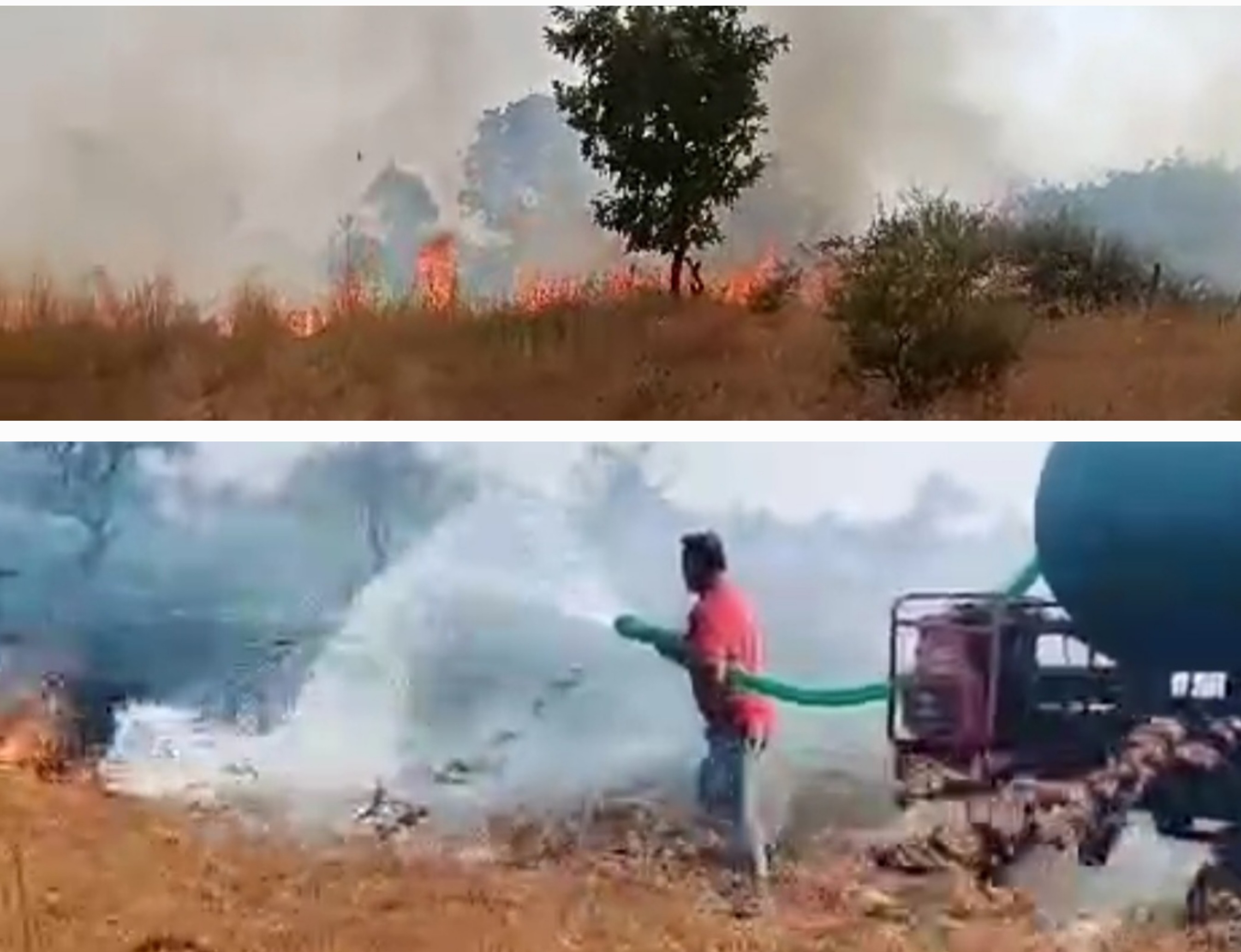 गांधीसागर चिता प्रोजेक्ट बाड़े में लगी आग, काबू पाने के लिए भानपुरा, रामपुरा और मनासा की फायर ब्रिगेड और ग्रामीणों की मदद से आग पर काबू पाया गया।