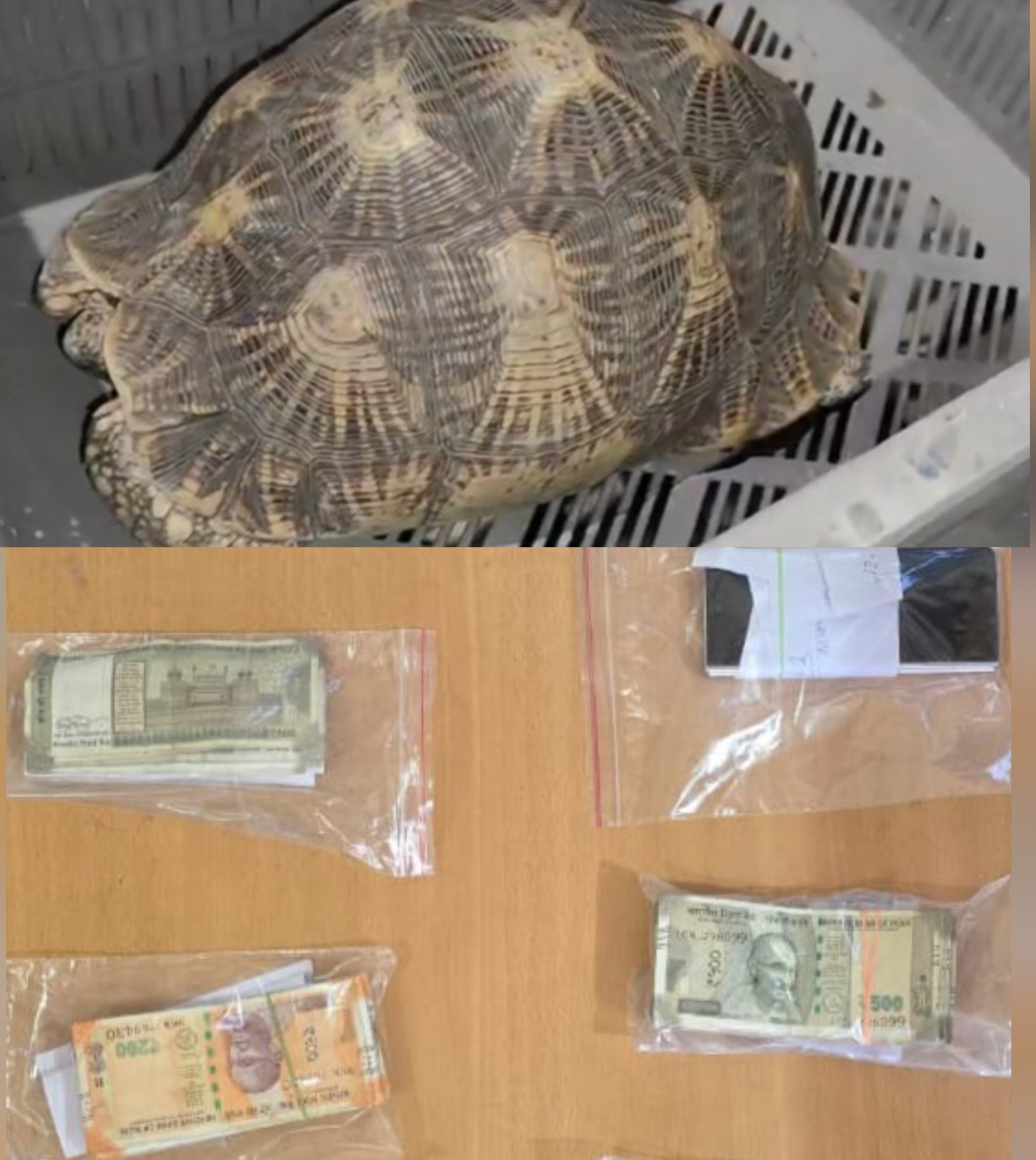 तीन थानों की संयुक्त टीम, 30 से अधिक पुलिसकर्मियों ने घेराबंदी कर दबिश दी। मौके से चार जुआरियों को गिरफ्तार किया गया, जिनके पास से 1,76,000 नकद, पांच मोबाइल फोन और ताश की पत्तियां बरामद की गईं। दूसरी दबिश मे दो कछुए बरामद