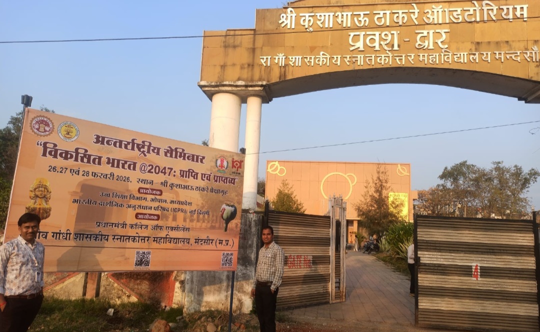 श्री कुशाभाऊ ठाकरे प्रेक्षागृह में 26, 27 एवं 28 फरवरी 2026 को “विकसित भारत @2047: प्राप्ति एवं प्राप्तव्य” विषय पर तीन दिवसीय अंतरराष्ट्रीय संगोष्ठी आयोजित की जाएगी। आयोजन का उद्देश्य वर्ष 2047 तक भारत को विकसित राष्ट्र बनाने की दिशा में बौद्धिक विमर्श, नीति-निर्माण और रणनीतियों पर सार्थक चर्चा करना है। उद्घाटन सत्र 26 फरवरी को सुबह 11 बजे शंख ध्वनि एवं स्वस्ति वाचन के साथ प्रारंभ होगा। मुख्य अतिथि के रूप में महात्मा गांधी अंतर्राष्ट्रीय हिंदी विश्वविद्यालय के पूर्व कुलपति प्रो. रजनीश कुमार शुक्ल उपस्थित रहेंगे। विशिष्ट अतिथि के रूप में एबीवीपी के विभाग संगठन मंत्री विनोद सिरोही तथा अध्यक्षता भाजपा मध्यप्रदेश के प्रवक्ता यशपाल सिंह सिसौदिया करेंगे। MIT (यूएसए) से प्रो. एलेक्स हैंकी बीज वक्तव्य देंगे।तीनों दिनों में छह तकनीकी सत्र आयोजित होंगे, जिनमें देश-विदेश के विद्वान अपने शोधपत्र प्रस्तुत करेंगे। 27 फरवरी को अतिथियों के लिए पशुपतिनाथ मंदिर में लोक दर्शन एवं नगर भ्रमण का कार्यक्रम निर्धारित है। समापन सत्र 28 फरवरी को आयोजित होगा, जिसमें मुख्य अतिथि के रूप में मंदसौर विधायक विपिन जैन उपस्थित रहेंगे। अंत में डॉ. सीमा जैन संगोष्ठी का सार प्रस्तुत।